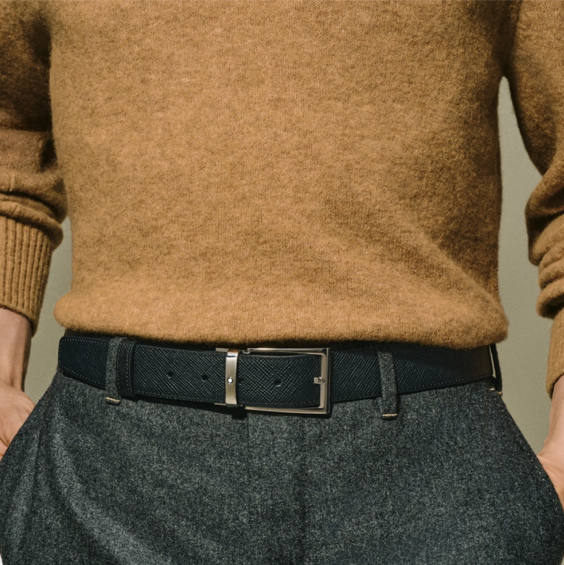 Двухсторонний мужской ремень Montblanc: кожа черного и коричневого цвета 35 мм от магазина премиальных ручек Premium Pens в Казани.